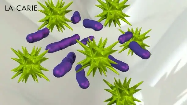 La carie dentaire est une maladie des tissus durs de la dent et est causée par la présence de sucres contenus dans les aliments et l’action des bactéries qui se trouvent dans la bouche. Si les bactéries ne sont pas adéquatement enlevées par le brossage ou la soie dentaire, elles transforment les sucres en acides qui attaquent la surface des dents en formant éventuellement un trou dans la dent. Certaines caries ne causent aucune douleur mais d’autres peuvent occasionner de la douleur au froid ou au chaud, ou encore une douleur soudaine très vive et persistante si la carie est très profonde.